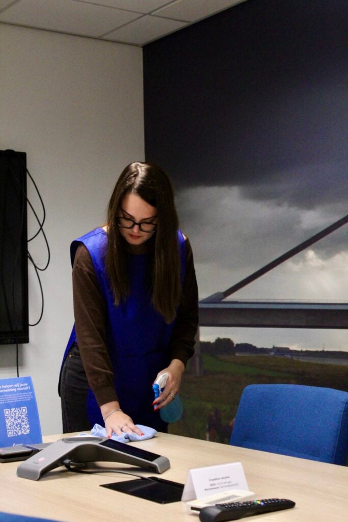 Grondige reiniging van bureaus, stoelen en kasten. Voor een frisse werkplek zonder stof, vlekken of bacteriën in het meubilair.